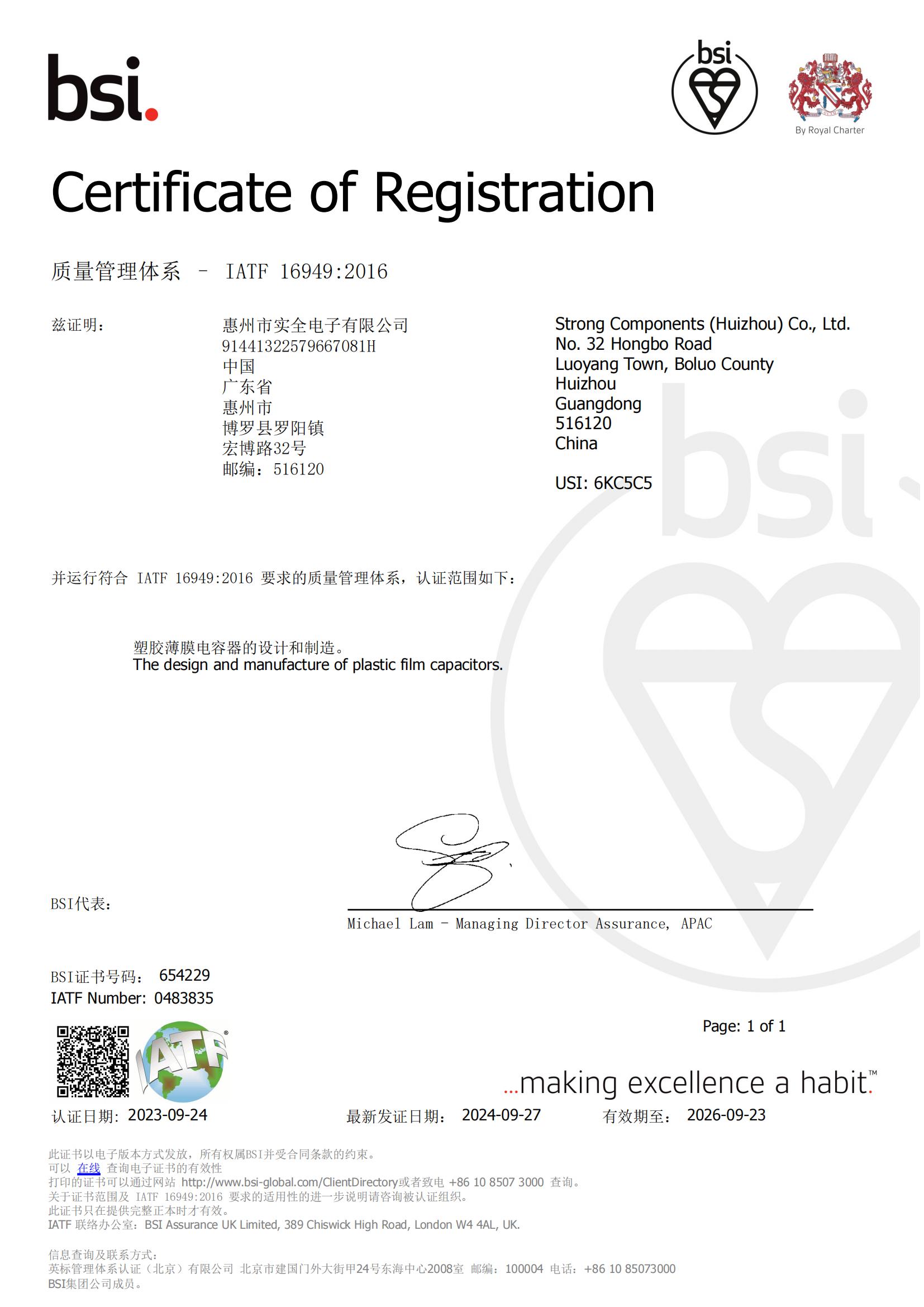 IATF16949質(zhì)量管理體系—汽車行業(yè)生產(chǎn)件與相關(guān)服務(wù)證書