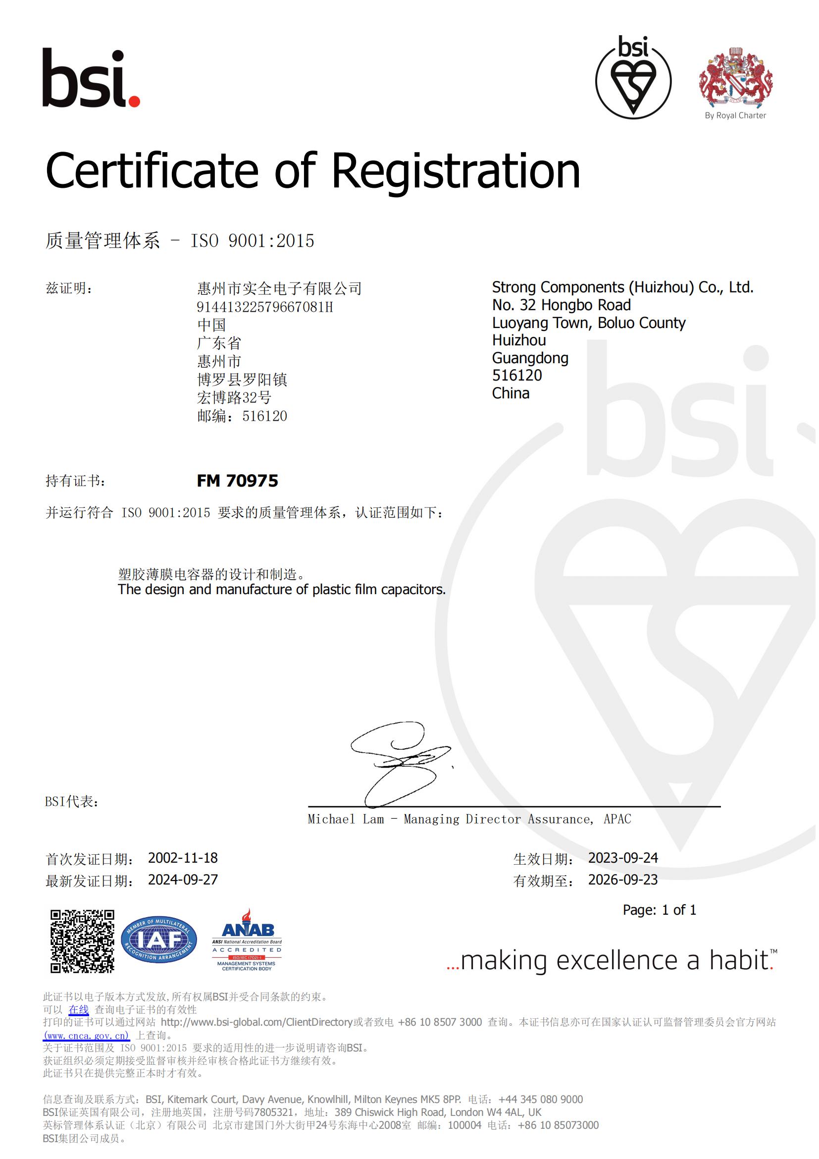 ISO9001質(zhì)量管理體系證書