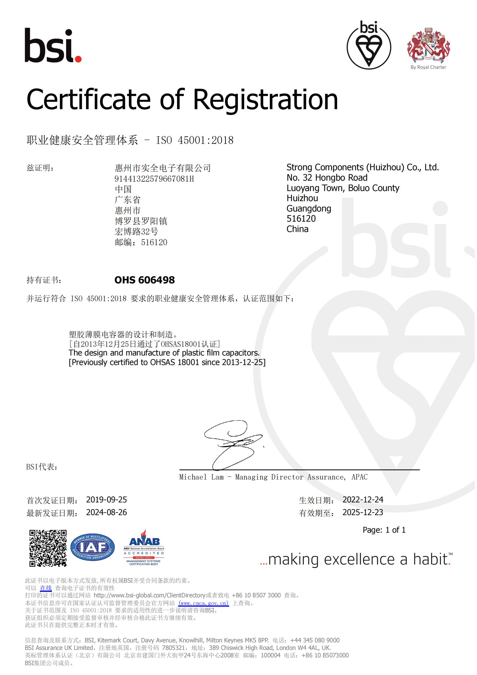 ISO45001職業(yè)健康安全管理體系證書