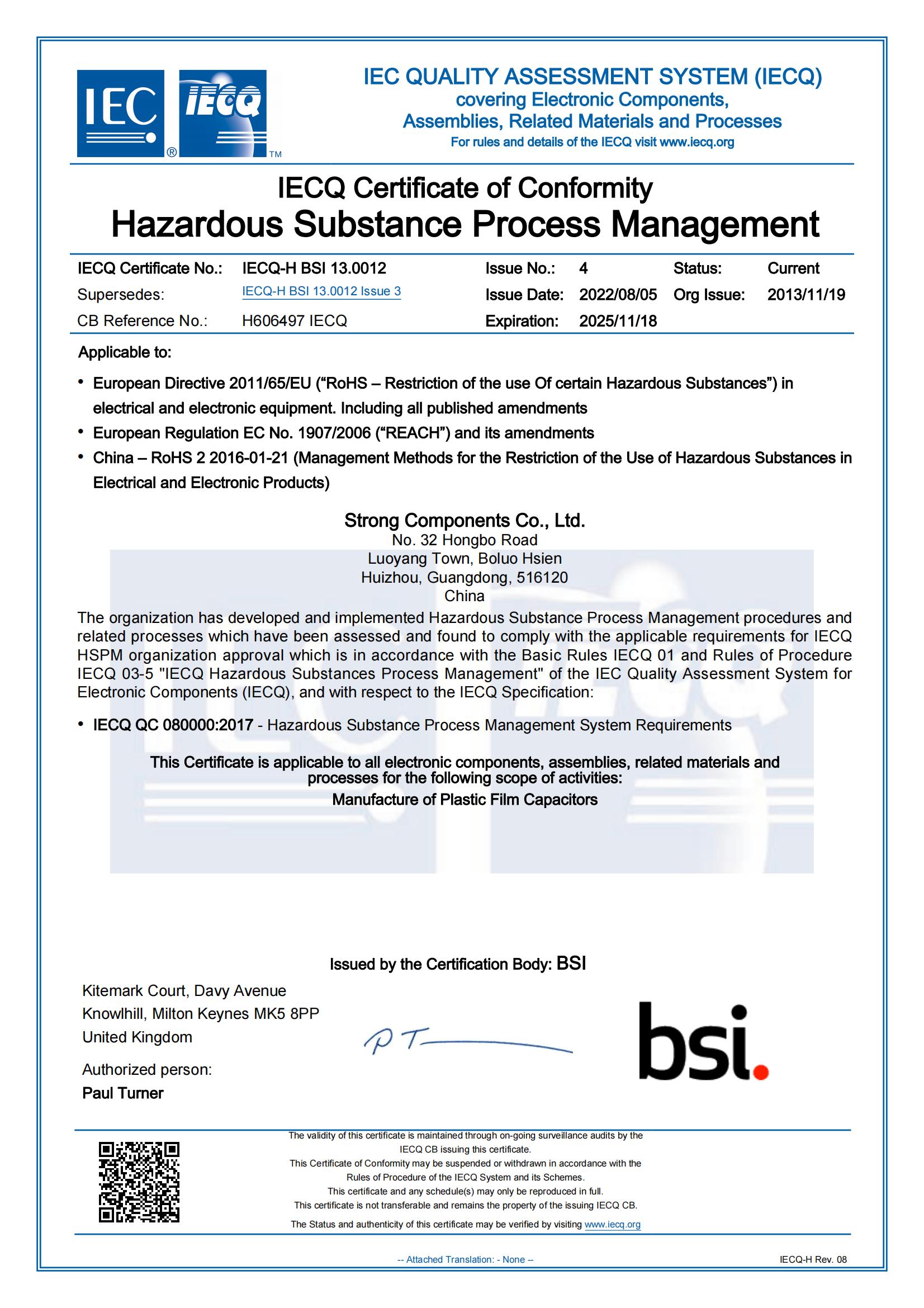 QC080000有害物質(zhì)管理體系證書