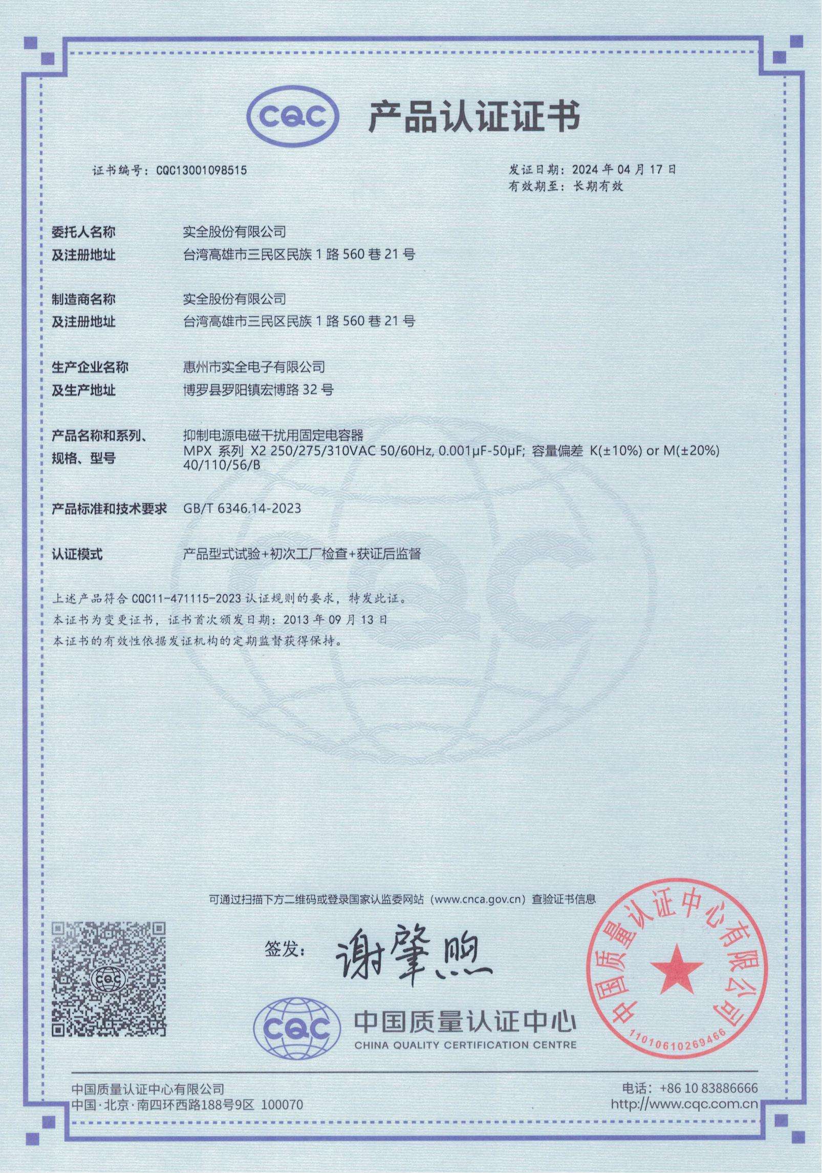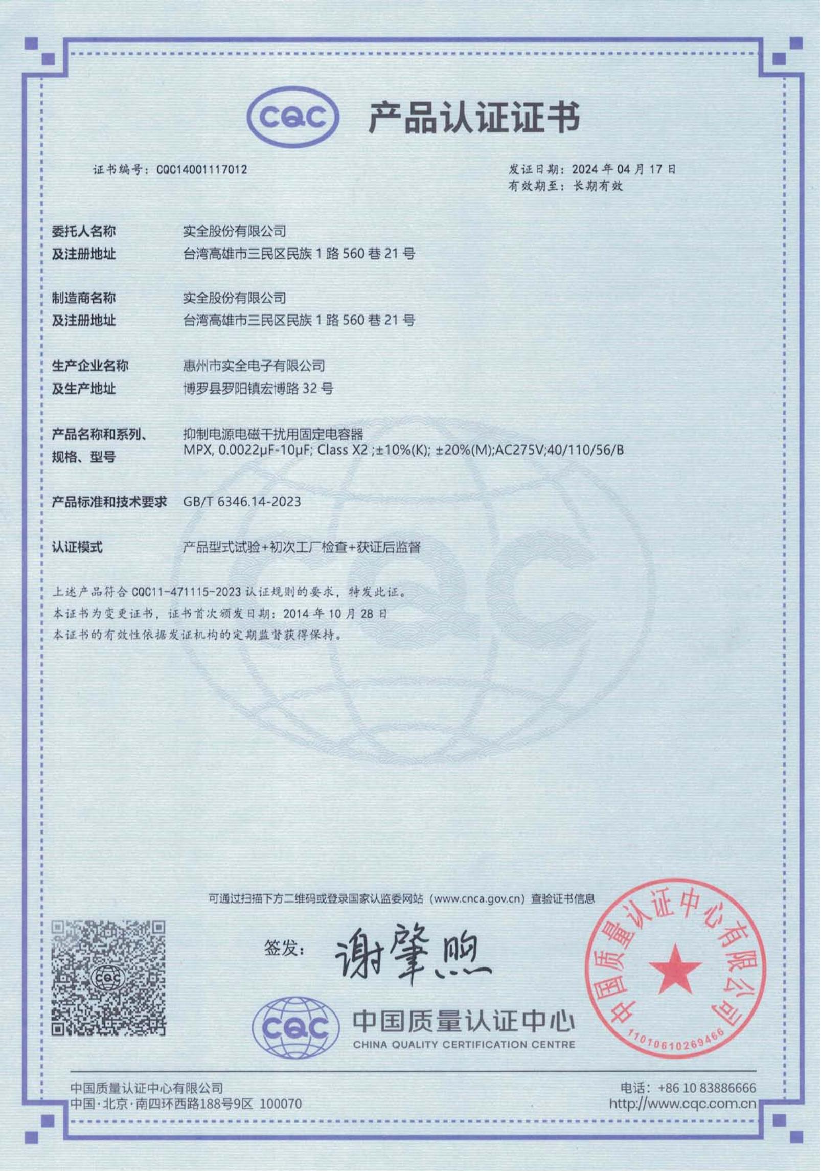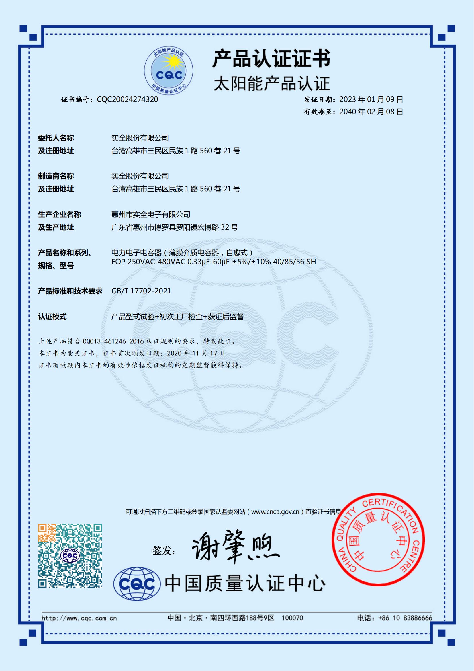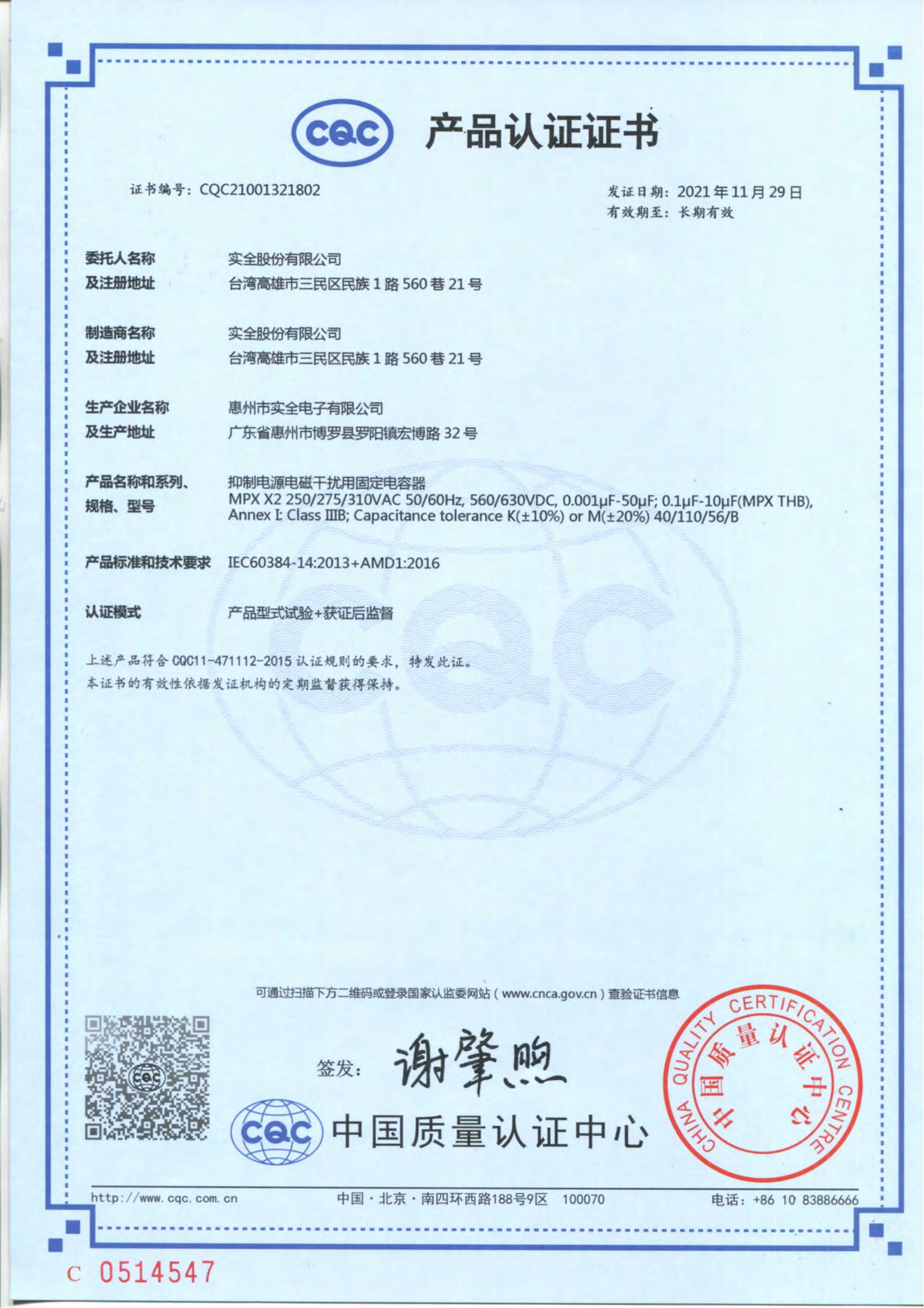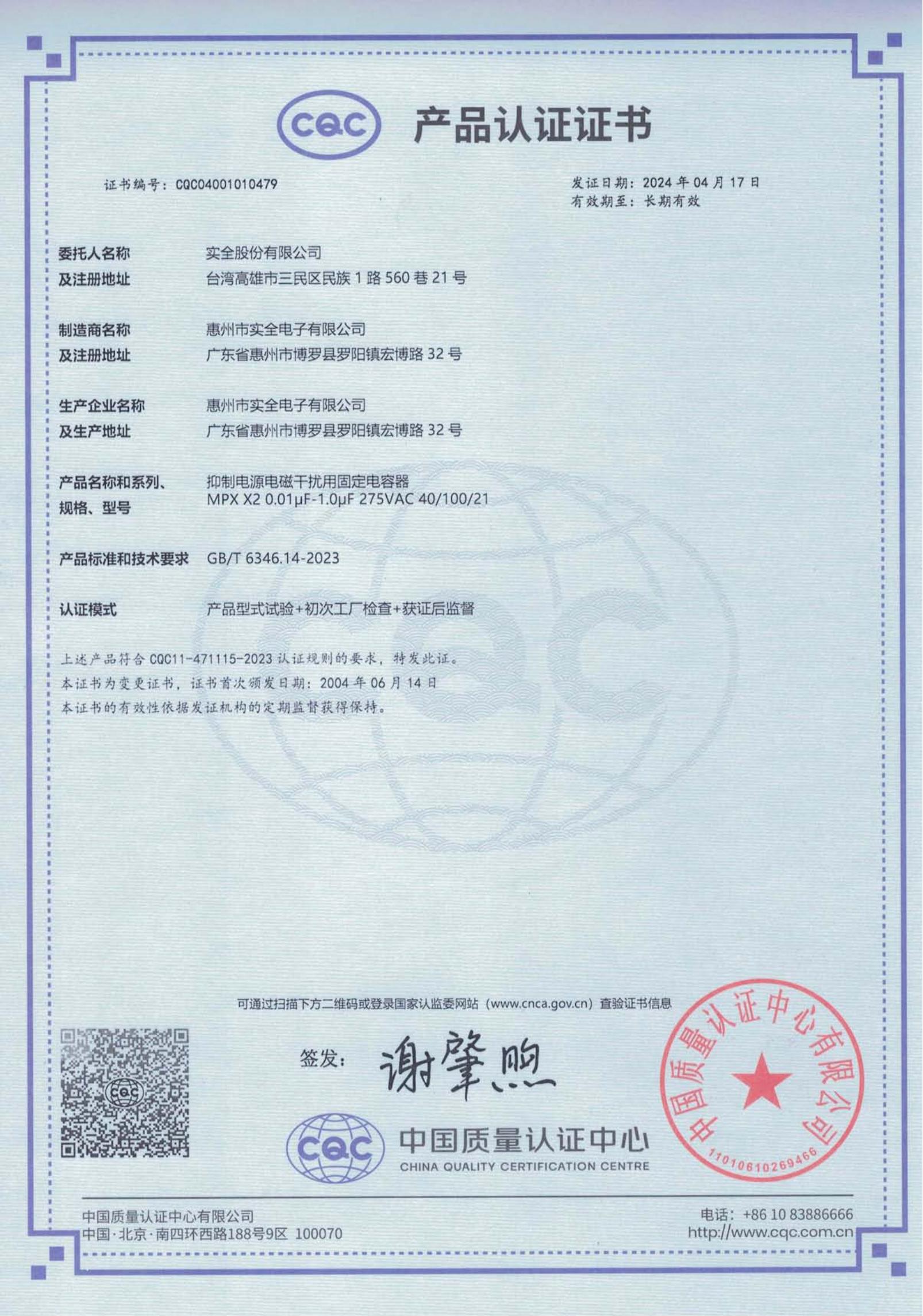CQC證書