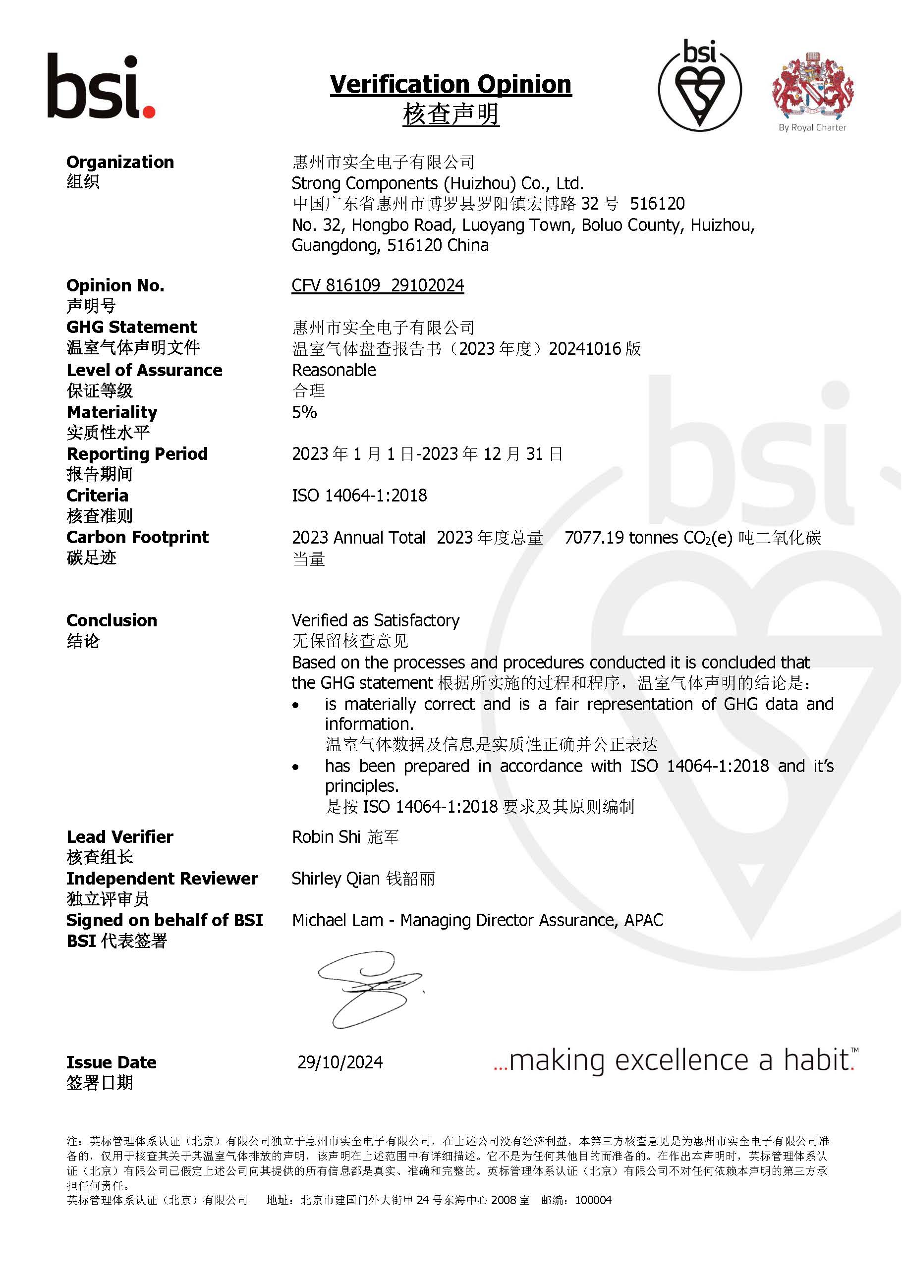 ISO14064 核查聲明